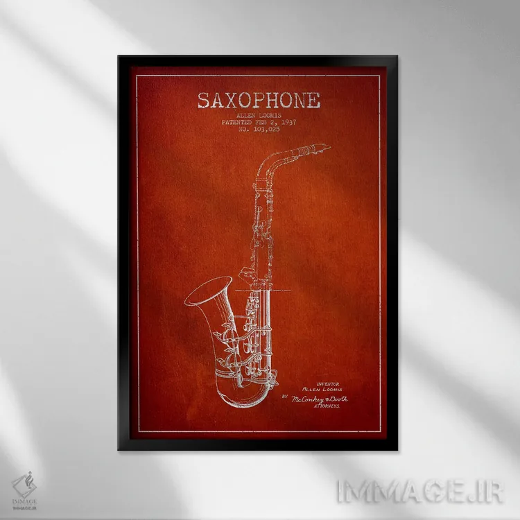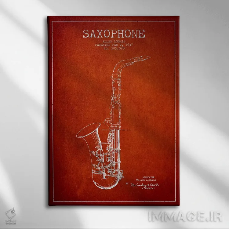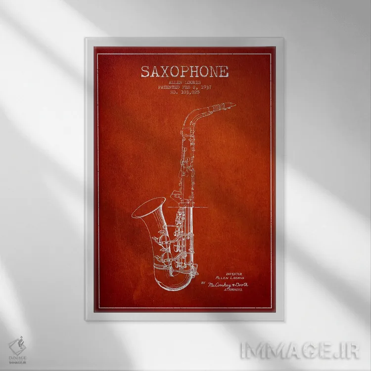 تابلو طرح ثبت اختراع ساکسوفون (قرمز) اثر پیکسل کهنه (استودیو/نام هنری)