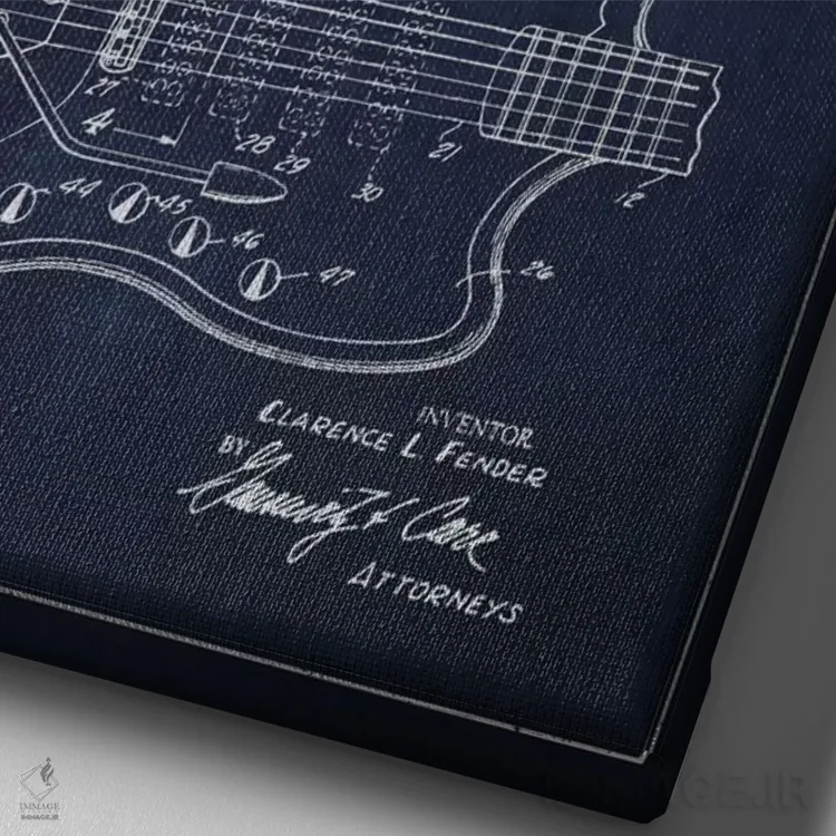 تابلو طرح ثبت اختراع گیتار الکتریک (آبی نفتی) اثر پیکسل کهنه (استودیو/نام هنری)