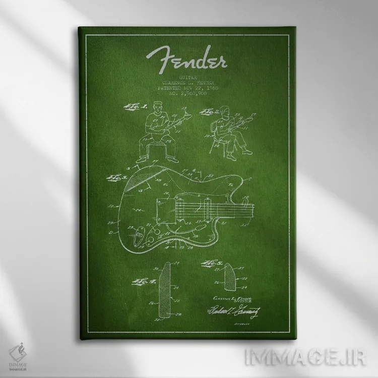تابلو طرح ثبت اختراع گیتار فندر (سبز) اثر پیکسل کهنه (استودیو/نام هنری)