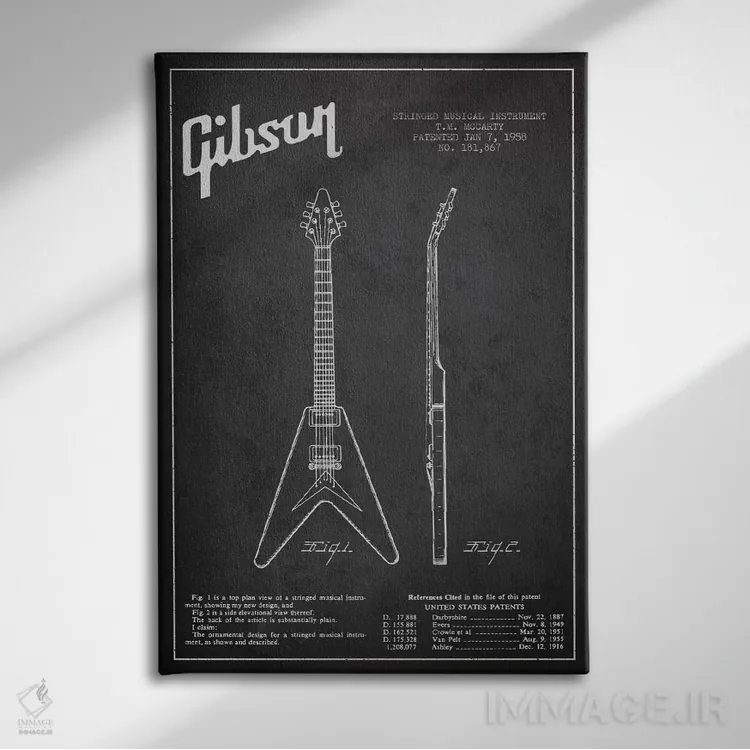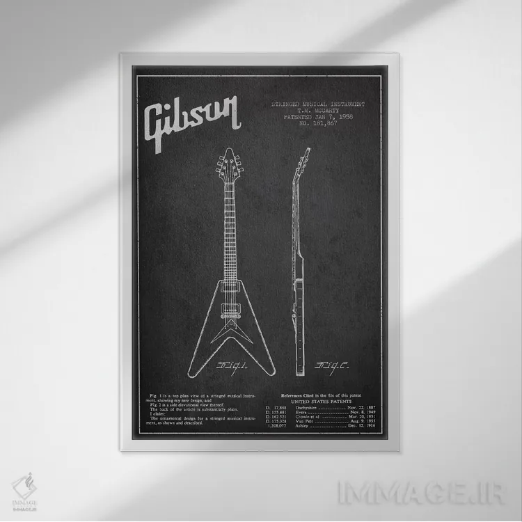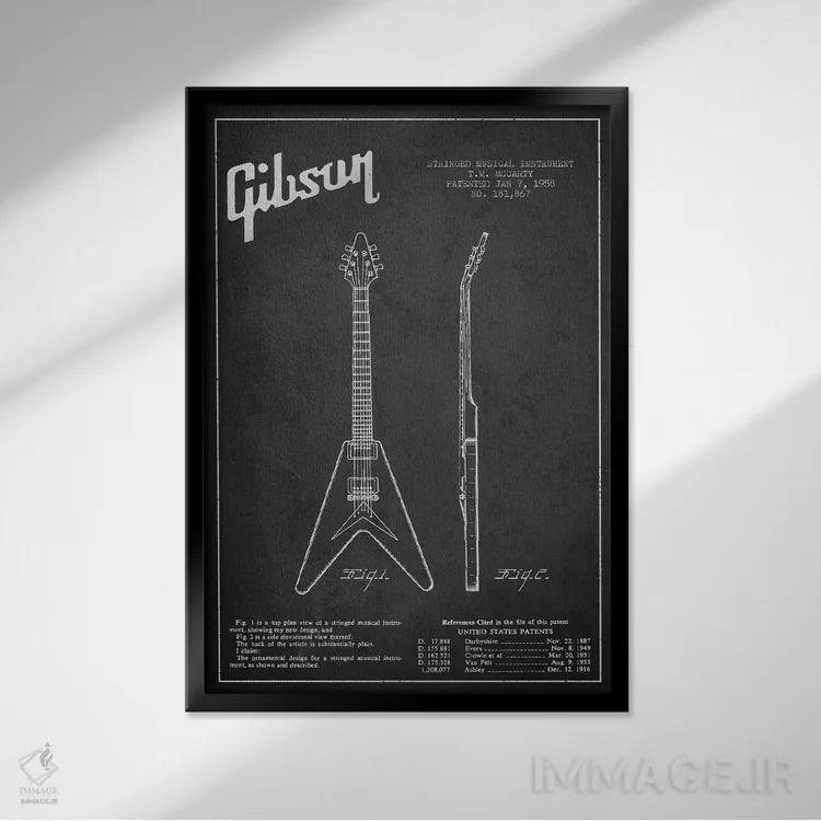 تابلو طرح ثبت اختراع گیتار الکتریک گیبسون (زغالی) اثر پیکسل کهنه (استودیو/نام هنری)