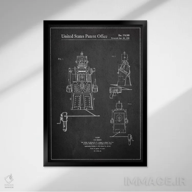 تابلو طرح ثبت اختراع ربات اسباببازی (تیره) اثر پیکسل کهنه (استودیو/نام هنری)