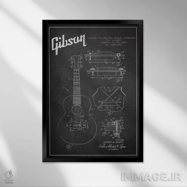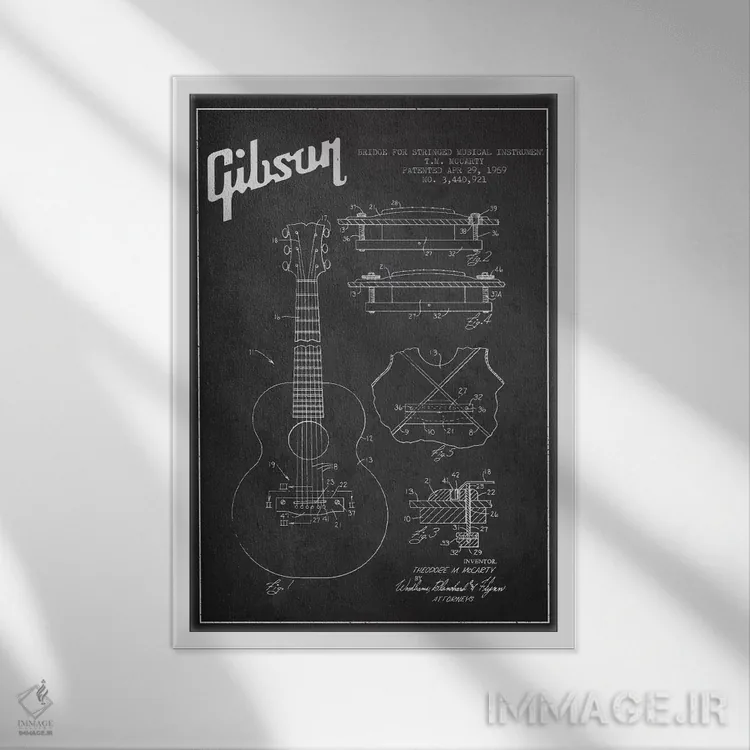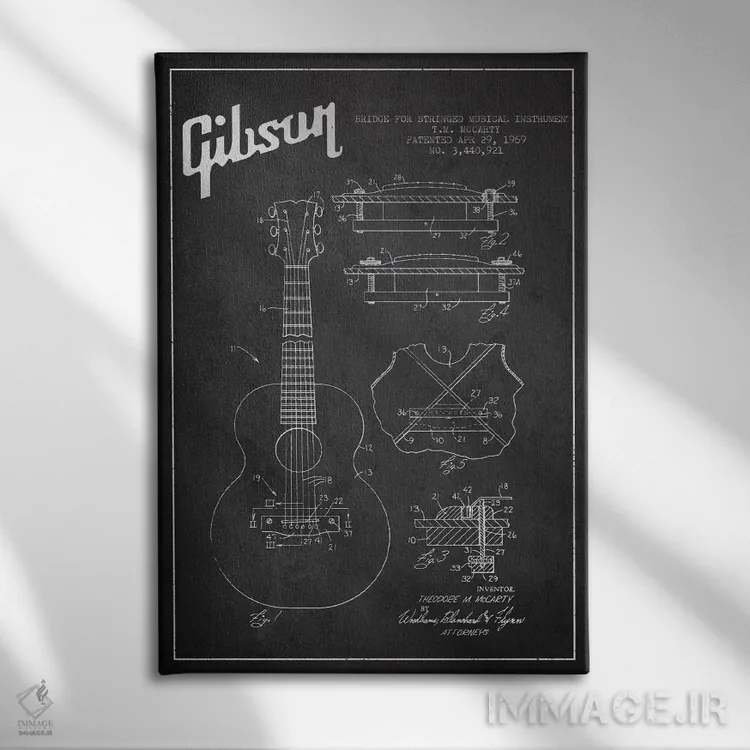 تابلو طرح ثبت اختراع ساز زهی گیبسون (زغالی) اثر پیکسل کهنه (استودیو/نام هنری)