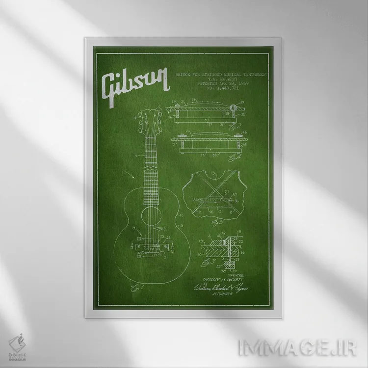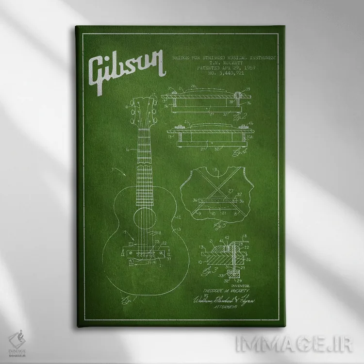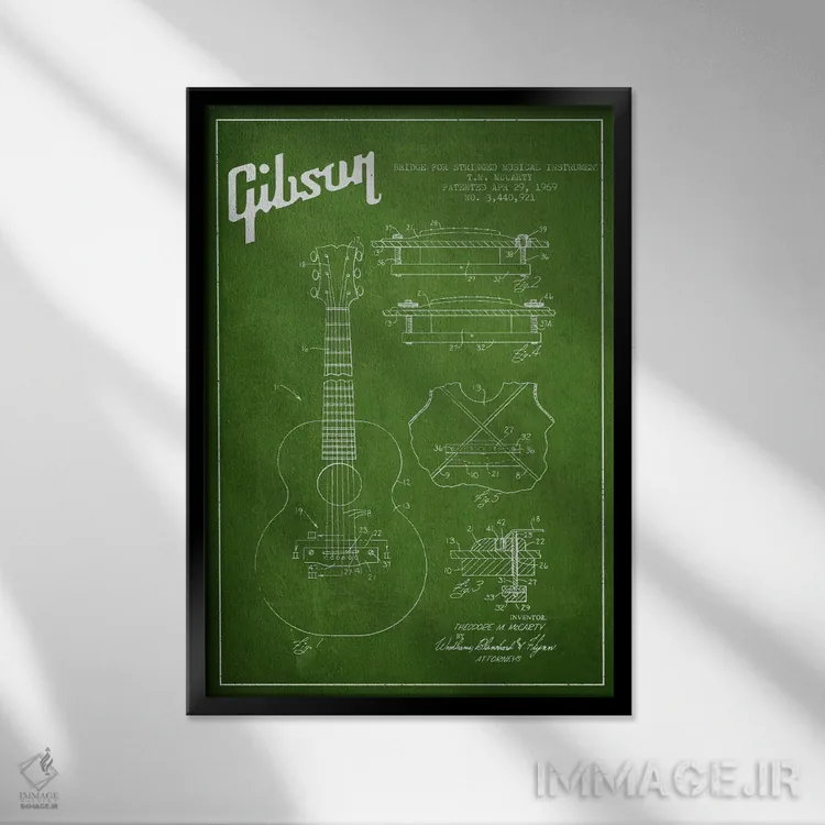 تابلو طرح ثبت اختراع ساز زهی گیبسون (سبز) اثر پیکسل کهنه (استودیو/نام هنری)