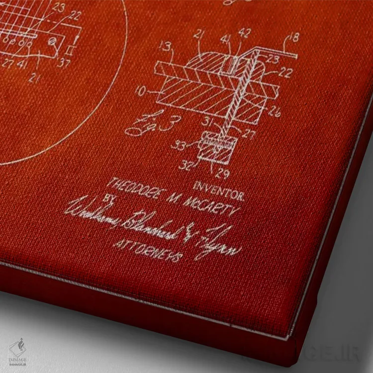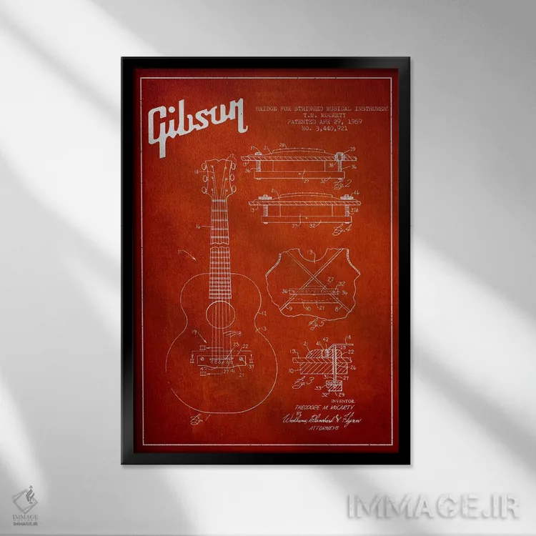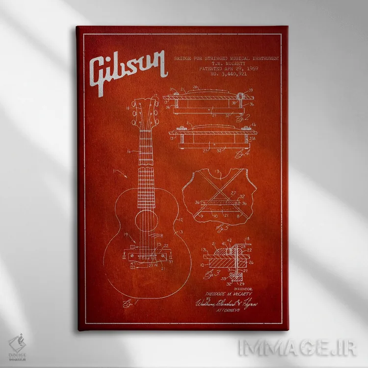 تابلو طرح ثبت اختراع ساز زهی گیبسون (قرمز) اثر پیکسل کهنه (استودیو/نام هنری)