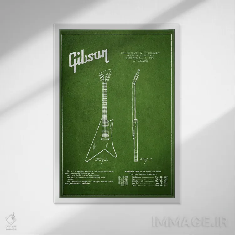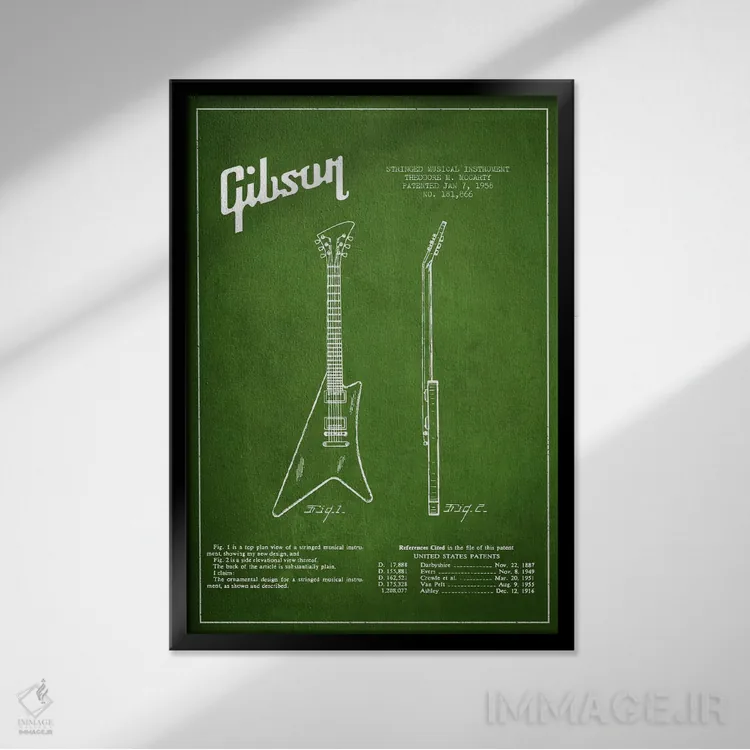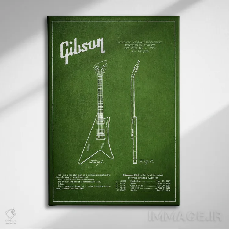 تابلو نقشهٔ اختراعی ساز گیبسون (سبز) اثر پیکسل کهنه (استودیو/نام هنری)