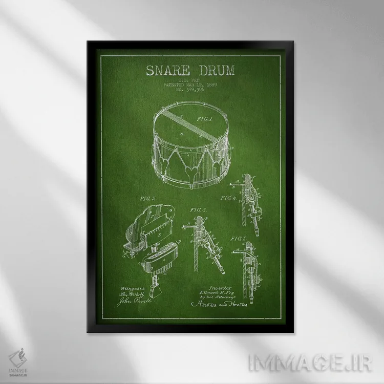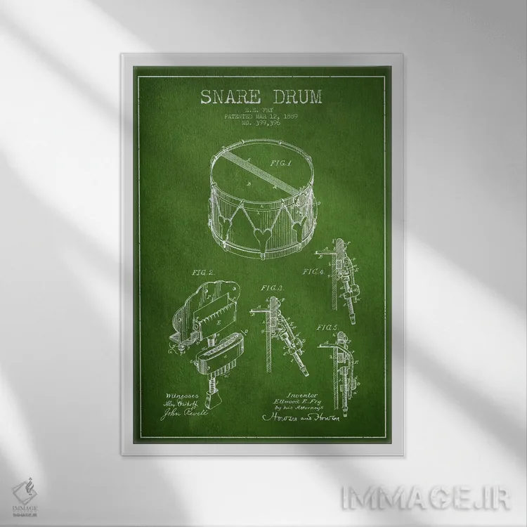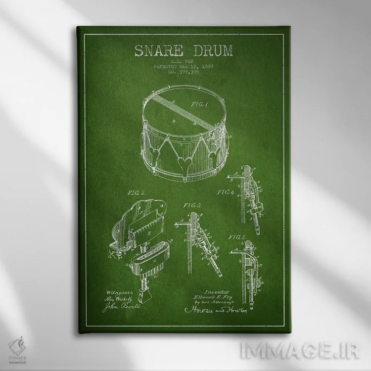 تابلو نقشهٔ اختراعی طبل کوچک (سبز) اثر پیکسل کهنه (استودیو/نام هنری)