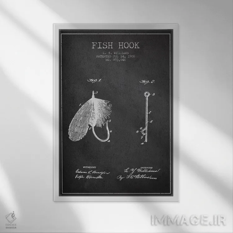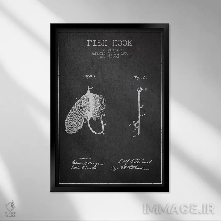 «نقشهٔ حقامتیاز قلاب ماهیگیری زغالسنگی» اثرِ «پیکسل کهنه (استودیو/نام هنری)» با حالوهوای هنری، حس نوستالژی را شیک و دکورپذیر به فضا اضافه میکند.
