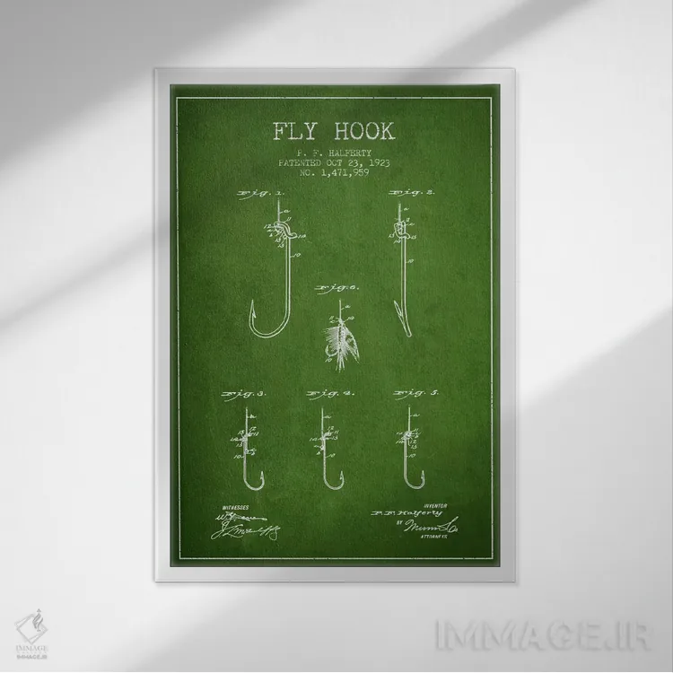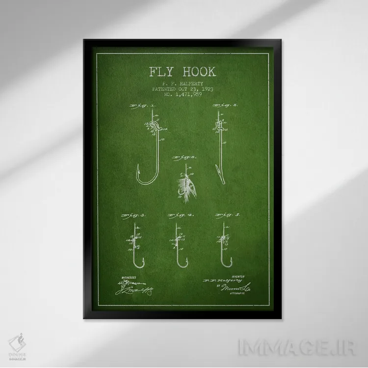 تابلو نقشهٔ حقامتیاز قلاب فلای (ماهیگیری) سبز اثر پیکسل کهنه (استودیو/نام هنری)