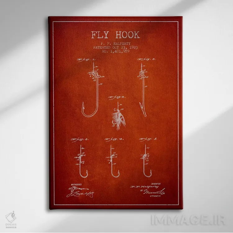 تابلو نقشهٔ حقامتیاز قلاب فلای (ماهیگیری) قرمز اثر پیکسل کهنه (استودیو/نام هنری)