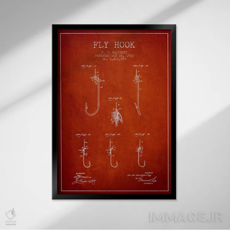 «نقشهٔ حقامتیاز قلاب فلای (ماهیگیری) قرمز» اثرِ «پیکسل کهنه (استودیو/نام هنری)» با حالوهوای هنری، حس نوستالژی را شیک و دکورپذیر به فضا اضافه میکند.