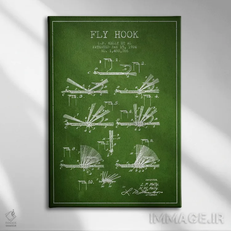 تابلو نقشهٔ حق‌امتیاز قلاب فلای (ماهیگیری) سبز اثر پیکسل کهنه (استودیو/نام هنری) - نمای پرسپکتیو محصول