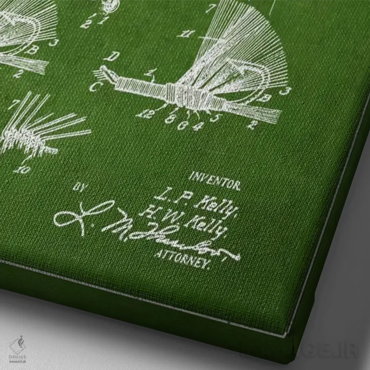 تابلو نقشهٔ حق‌امتیاز قلاب فلای (ماهیگیری) سبز اثر پیکسل کهنه (استودیو/نام هنری) - نمای نزدیک بافت بوم