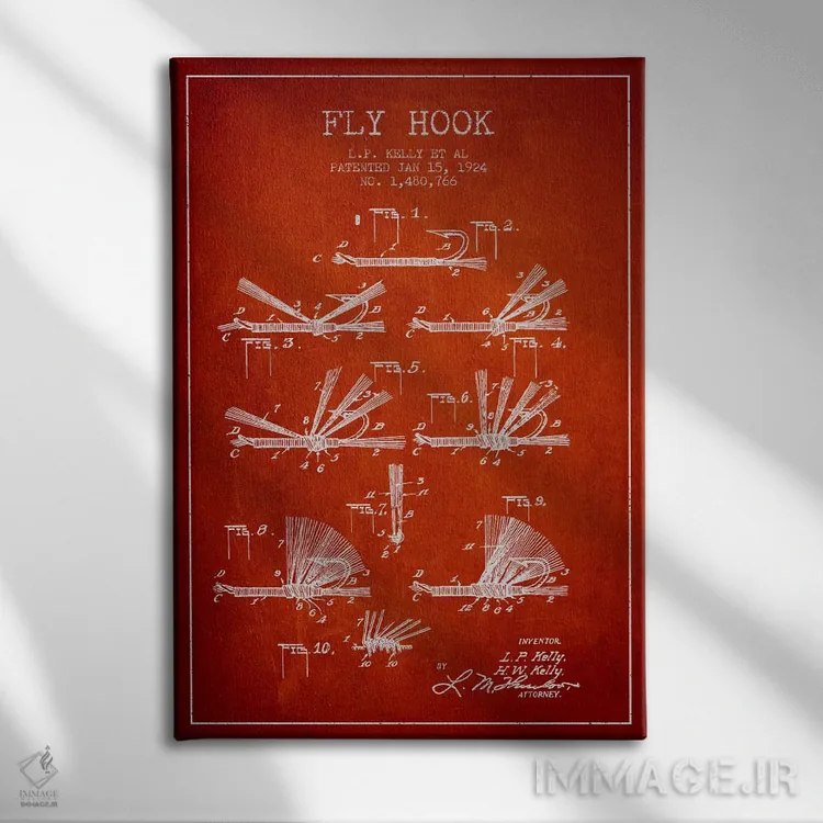 تابلو نقشهٔ حقامتیاز قلاب فلای (ماهیگیری) قرمز اثر پیکسل کهنه (استودیو/نام هنری)