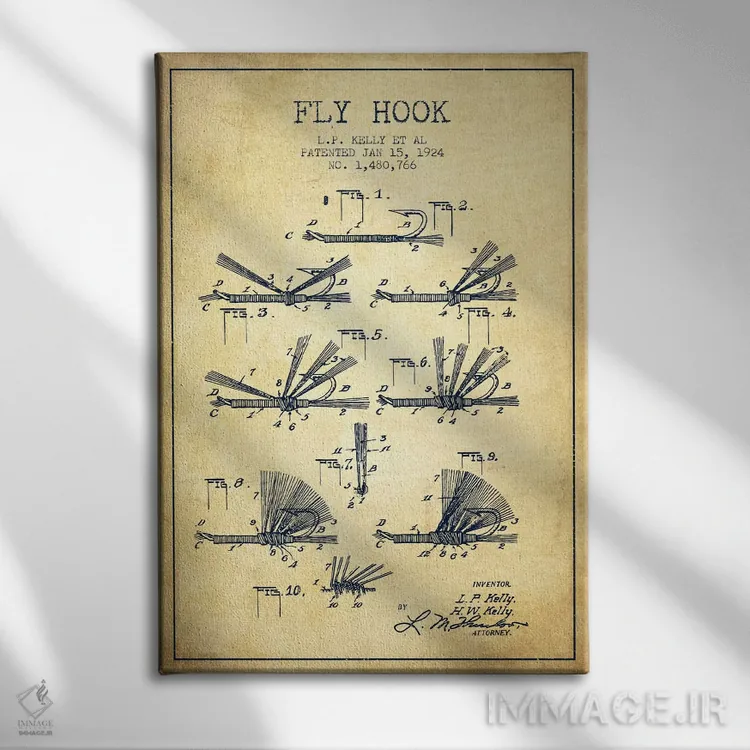 تابلو نقشهٔ حق‌امتیاز قلاب فلای (ماهیگیری) کلاسیک اثر پیکسل کهنه (استودیو/نام هنری) - نمای پرسپکتیو محصول