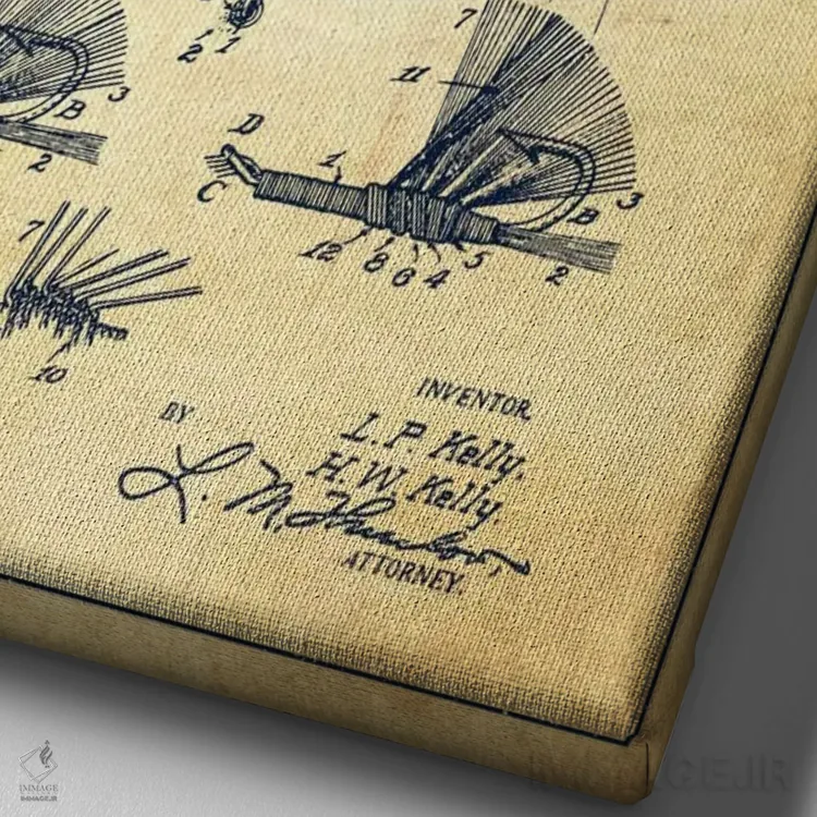 تابلو نقشهٔ حق‌امتیاز قلاب فلای (ماهیگیری) کلاسیک اثر پیکسل کهنه (استودیو/نام هنری) - نمای نزدیک بافت بوم