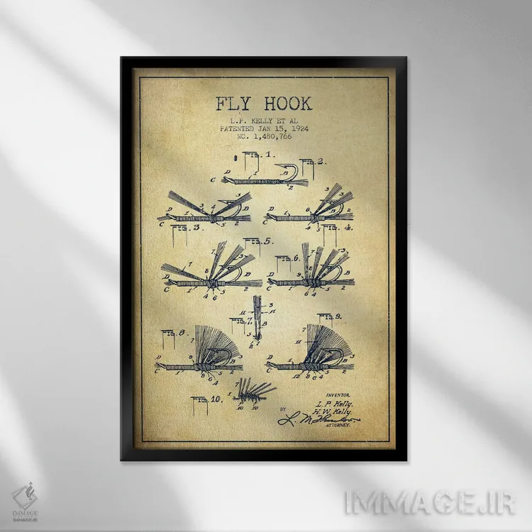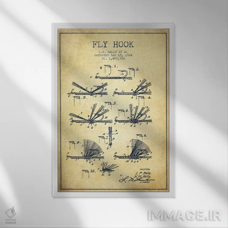 تابلو نقشهٔ حق‌امتیاز قلاب فلای (ماهیگیری) کلاسیک اثر پیکسل کهنه (استودیو/نام هنری) - نمای قاب‌دار سفید
