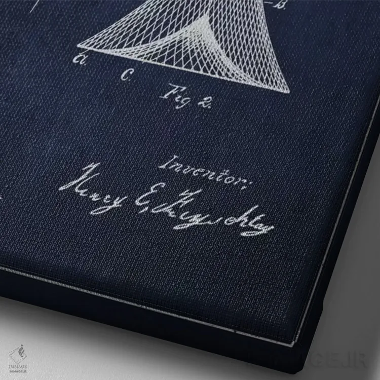 «نقشهٔ ثبت اختراع تور ماهیگیری سرمهای» اثرِ «پیکسل کهنه (استودیو/نام هنری)» برای راهرو، ورودی یا دیوارهای کوچک هم گزینهی خوبیست؛ چون حسش فوری منتقل میشود.