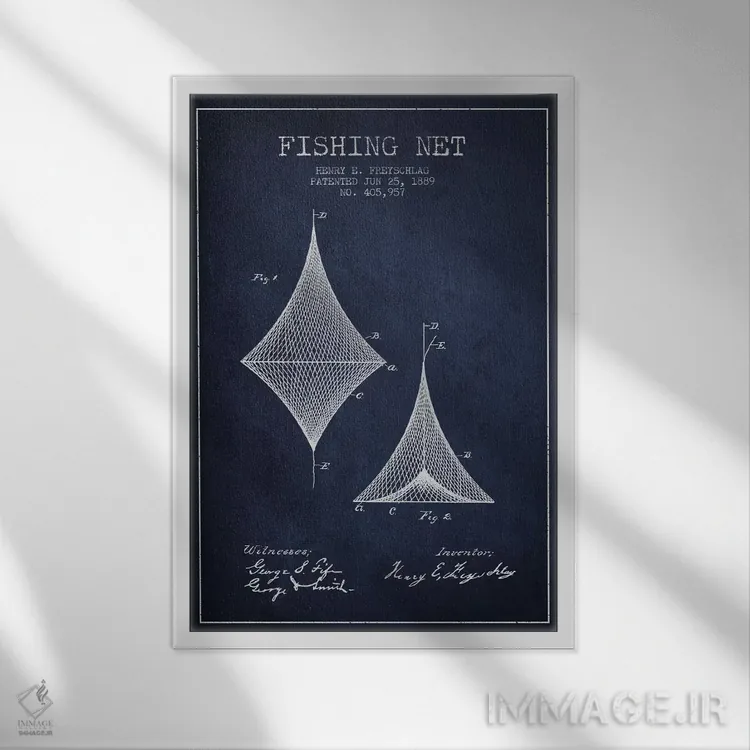 تابلو نقشهٔ ثبت اختراع تور ماهیگیری سرمهای اثر پیکسل کهنه (استودیو/نام هنری)