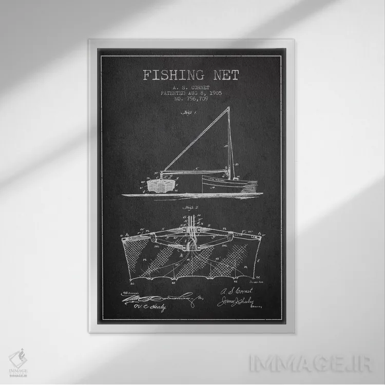 تابلو نقشهٔ ثبت اختراع تور ماهیگیری ذغالی اثر پیکسل کهنه (استودیو/نام هنری)