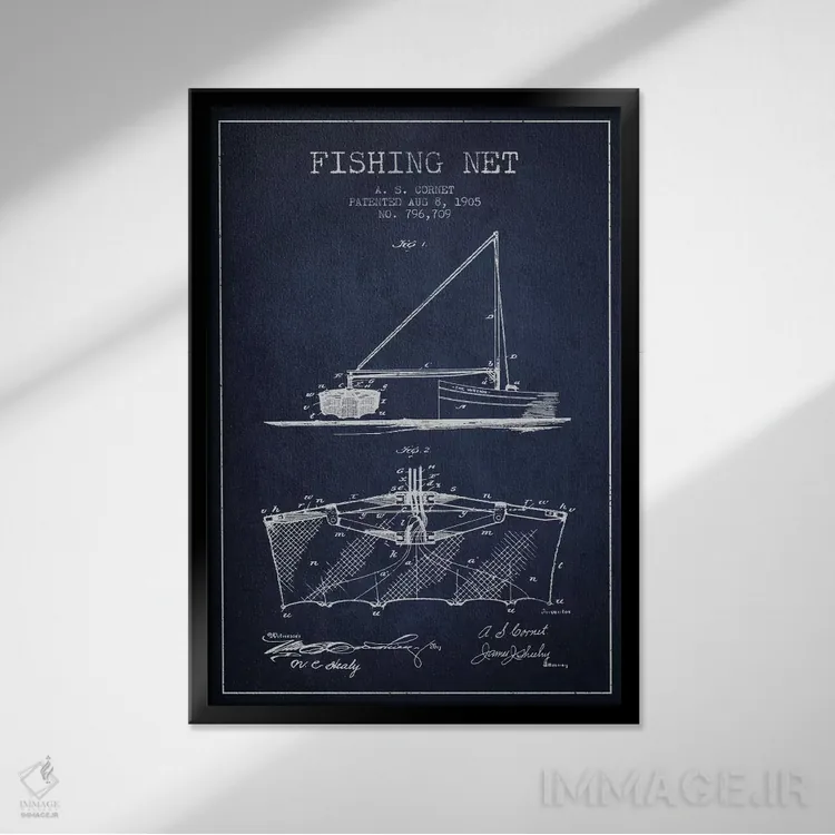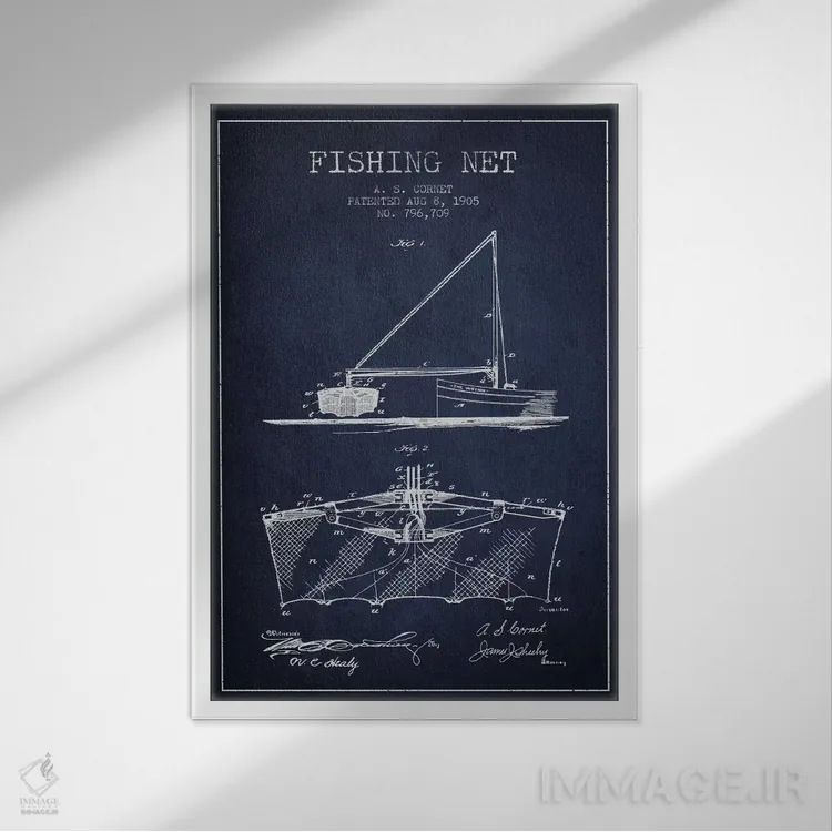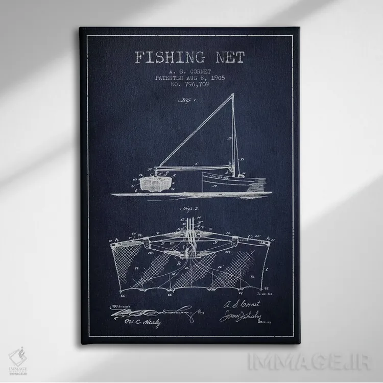 تابلو نقشهٔ ثبت اختراع تور ماهیگیری سرمهای اثر پیکسل کهنه (استودیو/نام هنری)