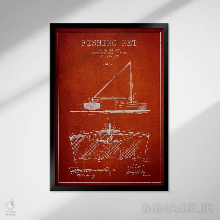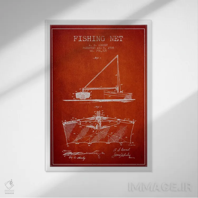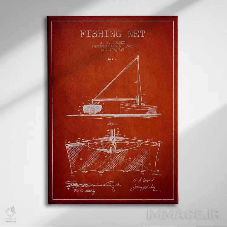 تابلو نقشهٔ ثبت اختراع تور ماهیگیری قرمز اثر پیکسل کهنه (استودیو/نام هنری)