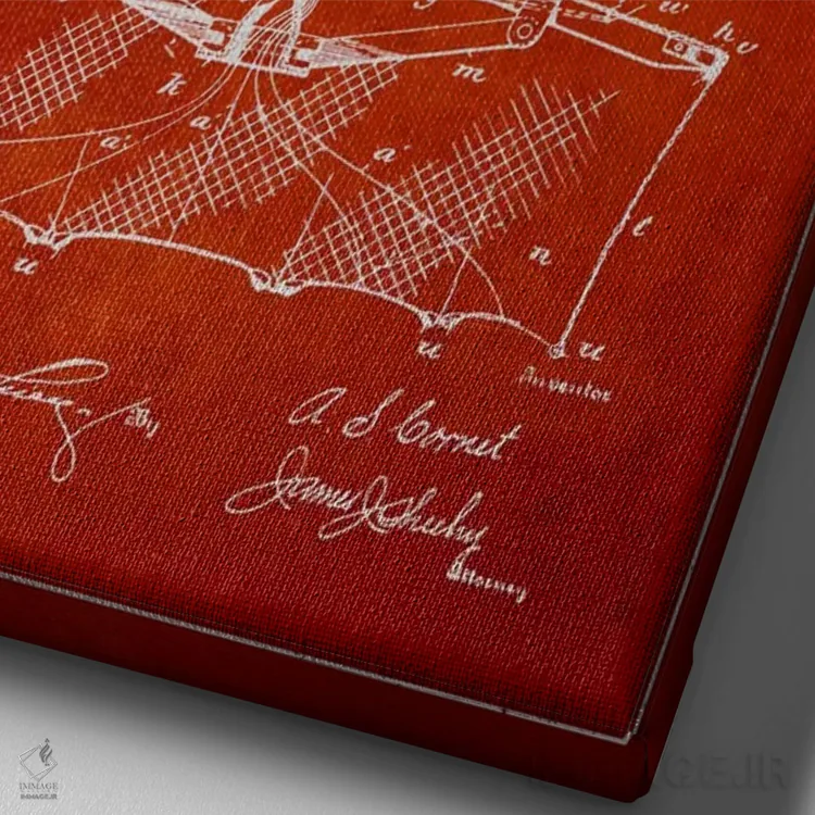 «نقشهٔ ثبت اختراع تور ماهیگیری قرمز» اثرِ «پیکسل کهنه (استودیو/نام هنری)» برای راهرو، ورودی یا دیوارهای کوچک هم گزینهی خوبیست؛ چون حسش فوری منتقل میشود.