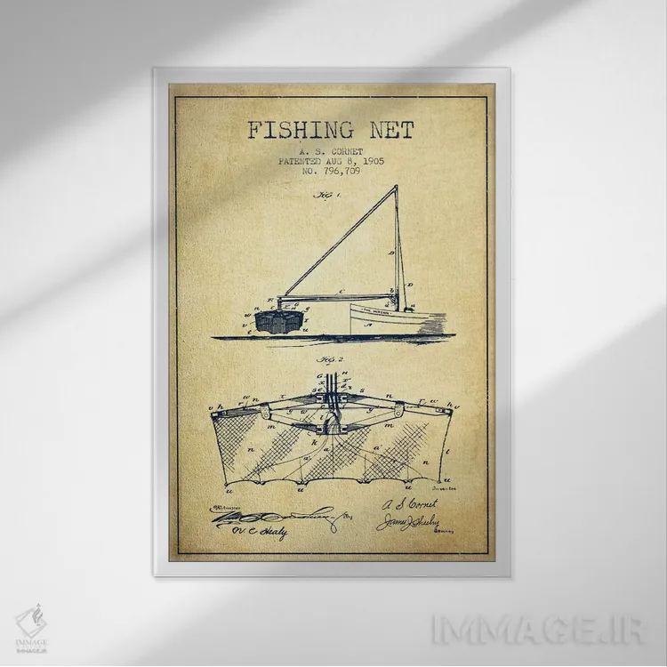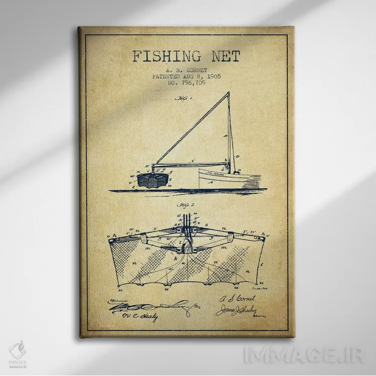 تابلو نقشهٔ ثبت اختراع تور ماهیگیری قدیمی اثر پیکسل کهنه (استودیو/نام هنری)