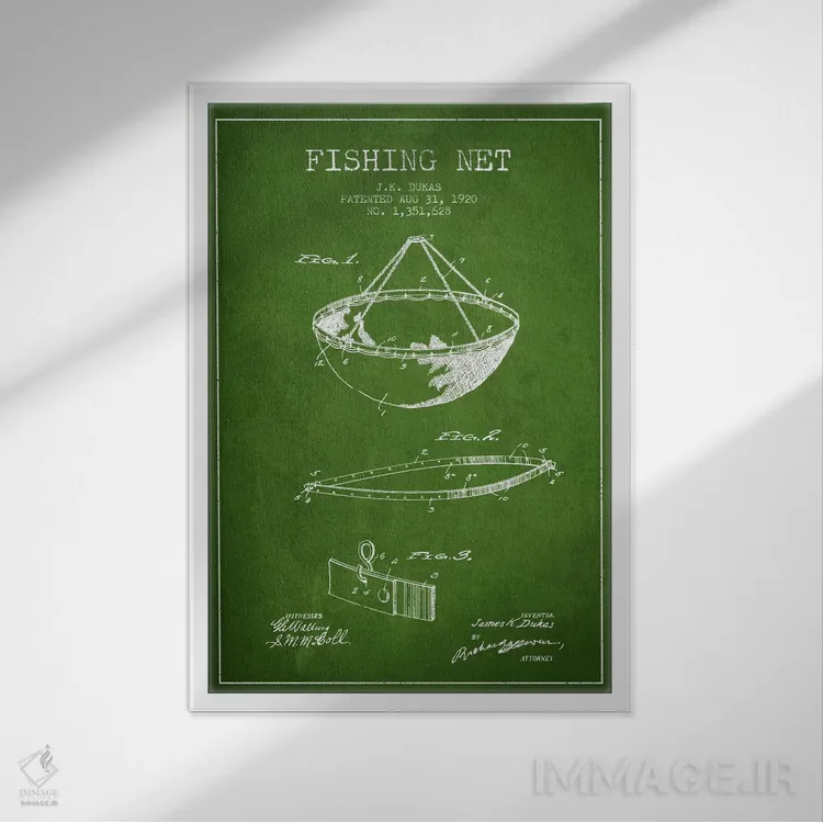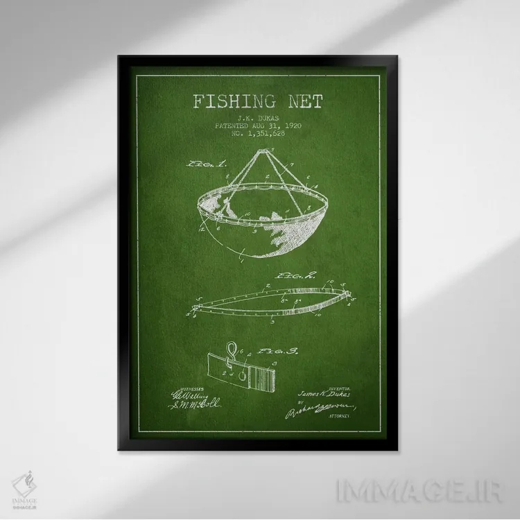 تابلو نقشهٔ ثبت اختراع تور ماهیگیری سبز اثر پیکسل کهنه (استودیو/نام هنری)