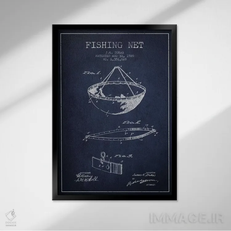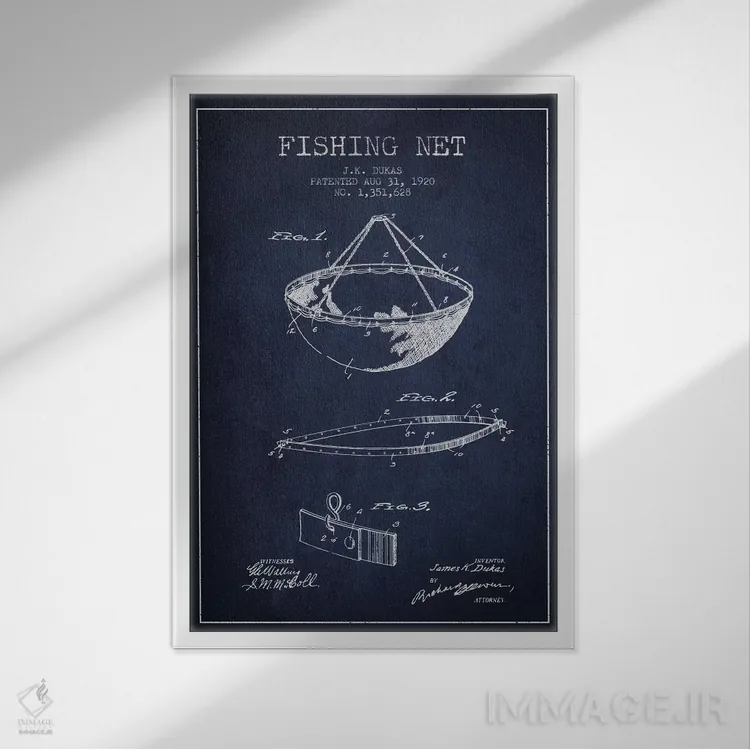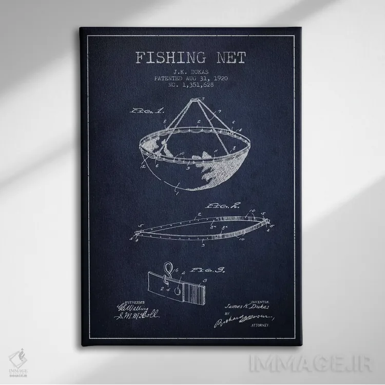 تابلو نقشهٔ ثبت اختراع تور ماهیگیری سرمهای اثر پیکسل کهنه (استودیو/نام هنری)