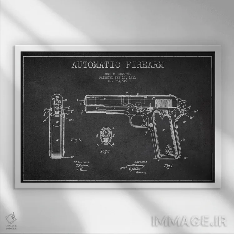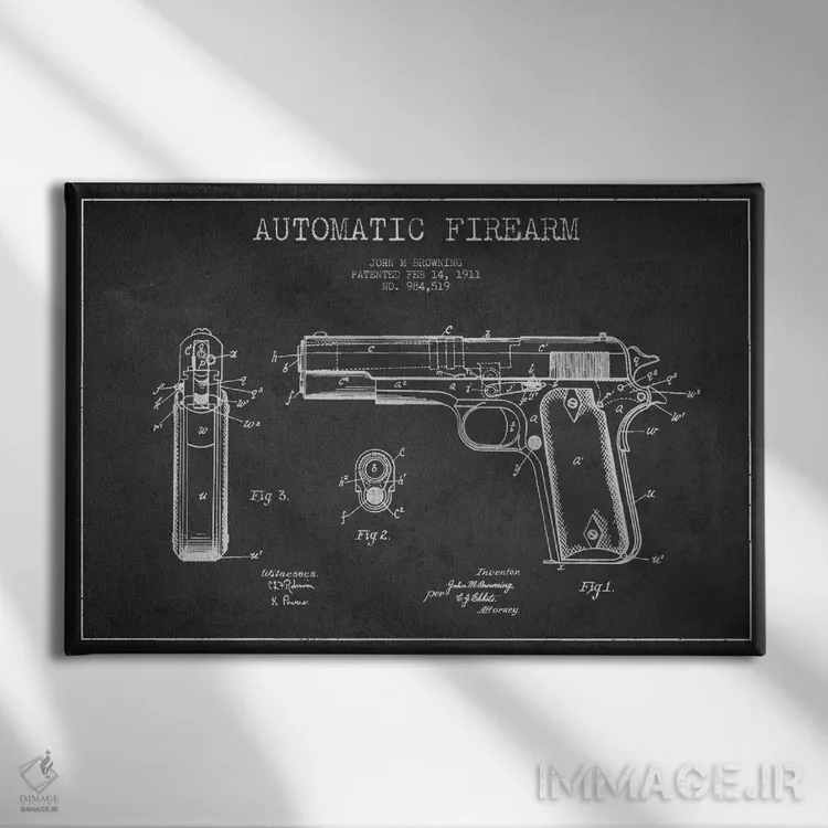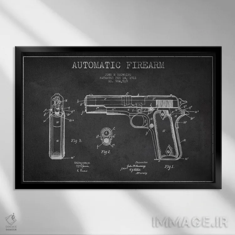تابلو نقشهٔ ثبت اختراع سلاح خودکار ذغالی اثر پیکسل کهنه (استودیو/نام هنری)
