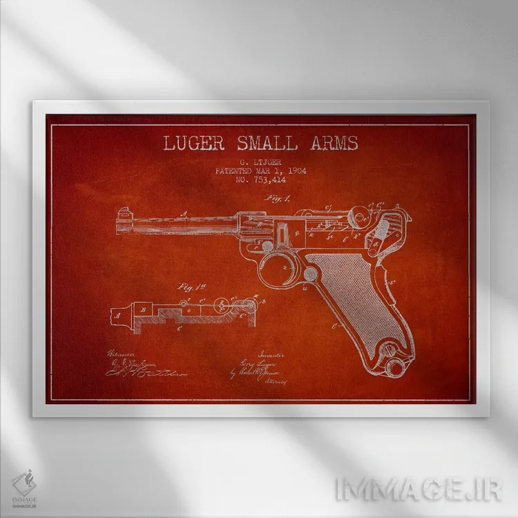 تابلو نقشهٔ ثبت اختراع سلاح لوگر قرمز اثر پیکسل کهنه (استودیو/نام هنری)