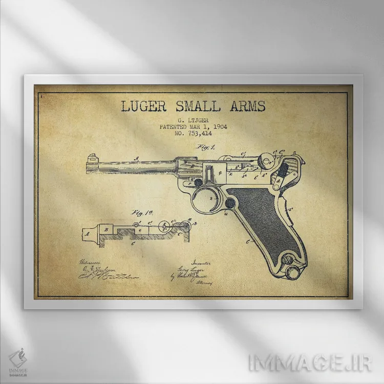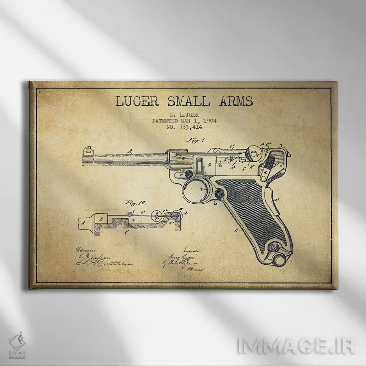 تابلو نقشهٔ ثبت اختراع سلاح لوگر قدیمی اثر پیکسل کهنه (استودیو/نام هنری)