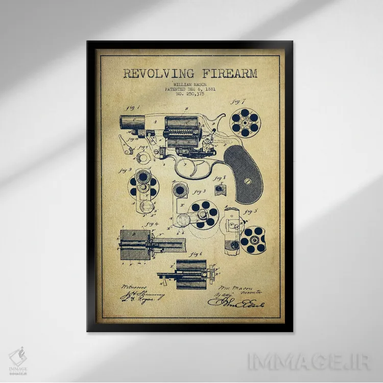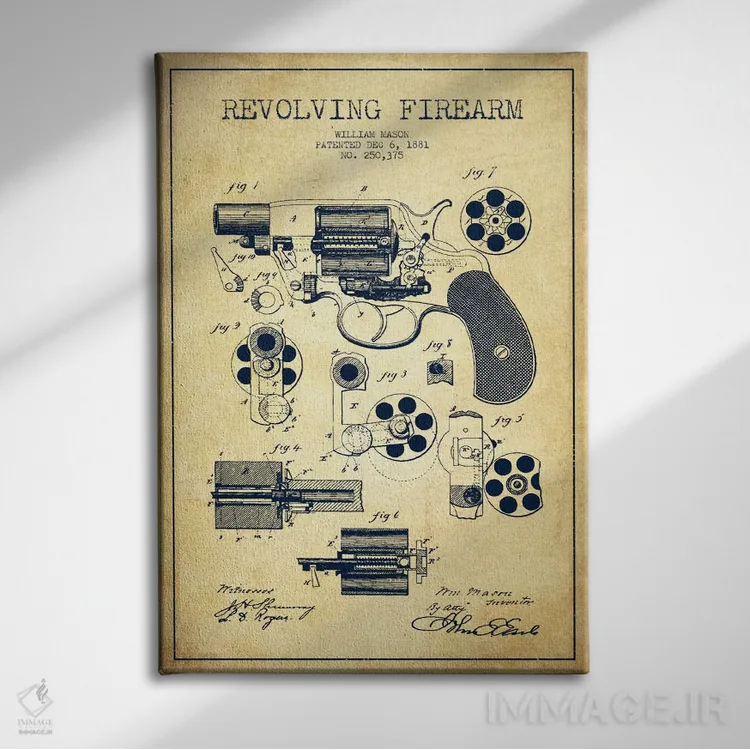 تابلو نقشهٔ ثبت اختراع سلاح چرخان قدیمی اثر پیکسل کهنه (استودیو/نام هنری)