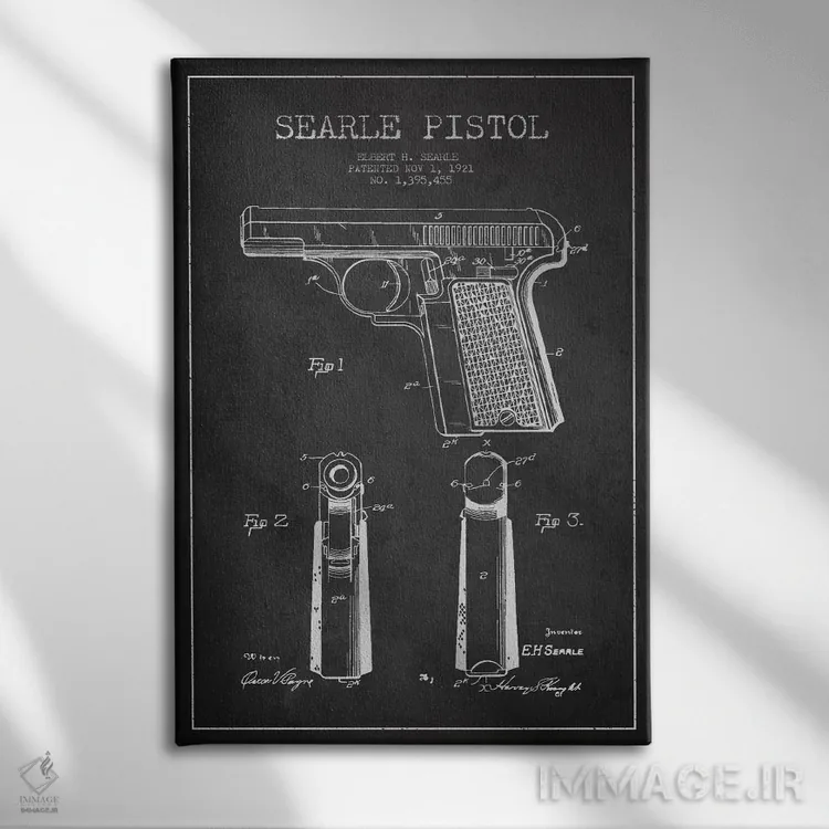 تابلو نقشهٔ ثبت اختراع تپانچه سیِرل ذغالی اثر پیکسل کهنه (استودیو/نام هنری)