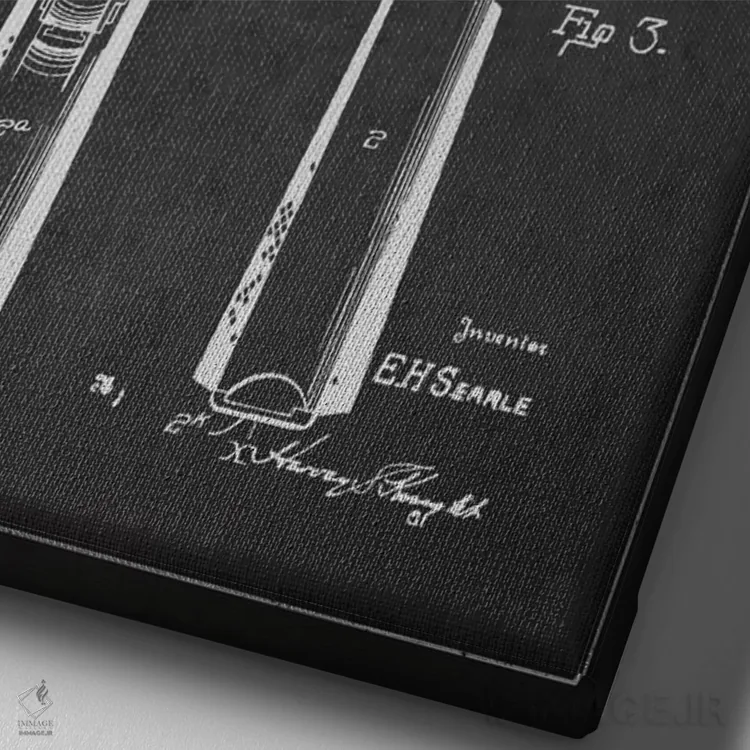 اگر دکور شما کلاسیک/رترو است، «نقشهٔ ثبت اختراع تپانچه سیِرل ذغالی» اثرِ «پیکسل کهنه (استودیو/نام هنری)» با سبک هنری کاملاًً مینشیند.