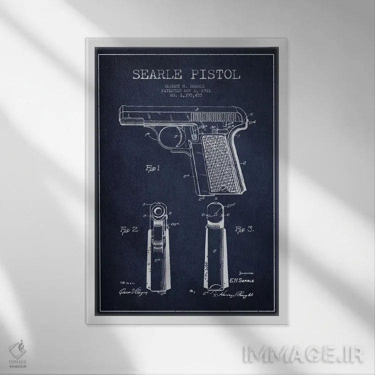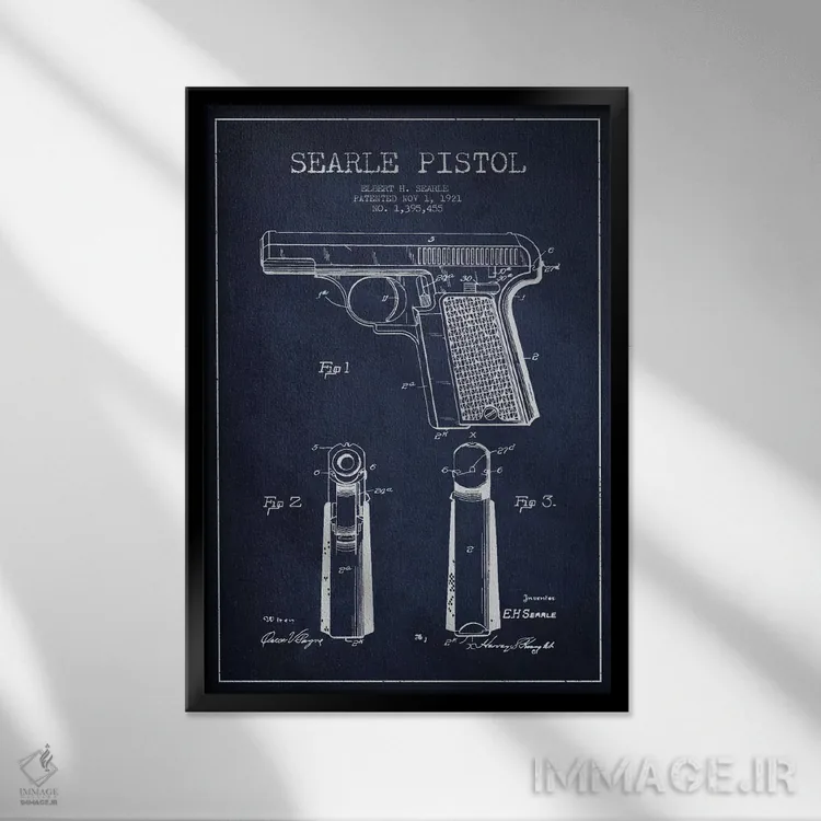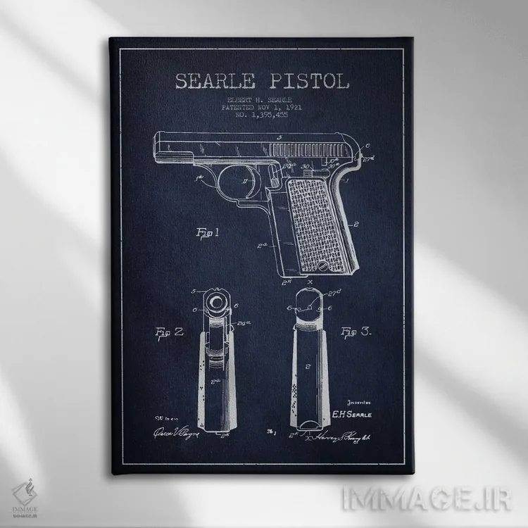 تابلو نقشهٔ ثبت اختراع تپانچه سیِرل سرمهای اثر پیکسل کهنه (استودیو/نام هنری)