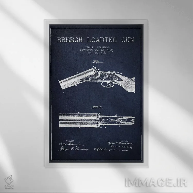 تابلو نقشهٔ ثبت اختراع اسلحه برکارد سرمهای اثر پیکسل کهنه (استودیو/نام هنری)