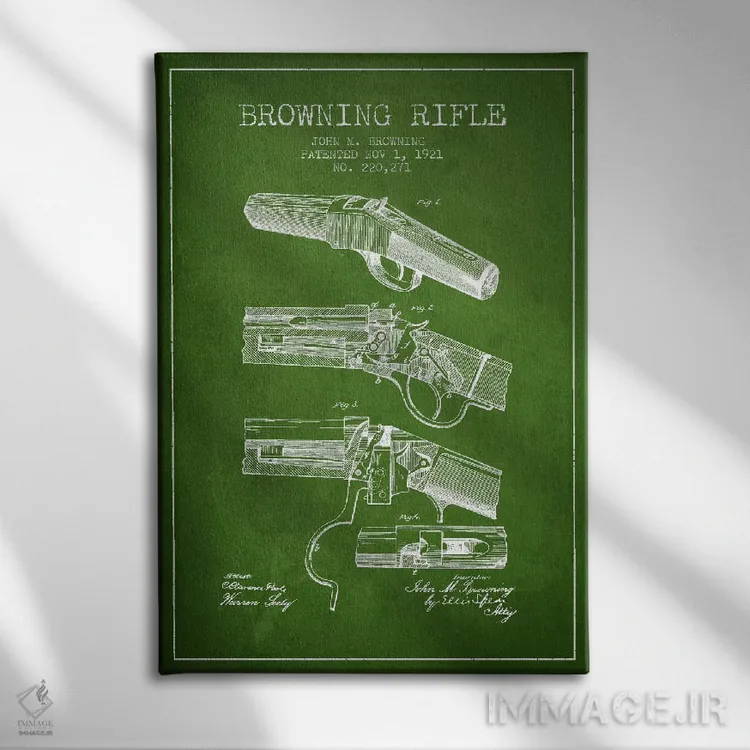 تابلو نقشهٔ ثبت اختراع تفنگ برونینگ سبز اثر پیکسل کهنه (استودیو/نام هنری)