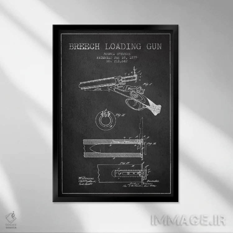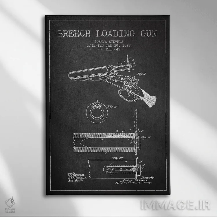 تابلو نقشهٔ ثبت اختراع اسلحه شاتگان استیونز ذغالی اثر پیکسل کهنه (استودیو/نام هنری)