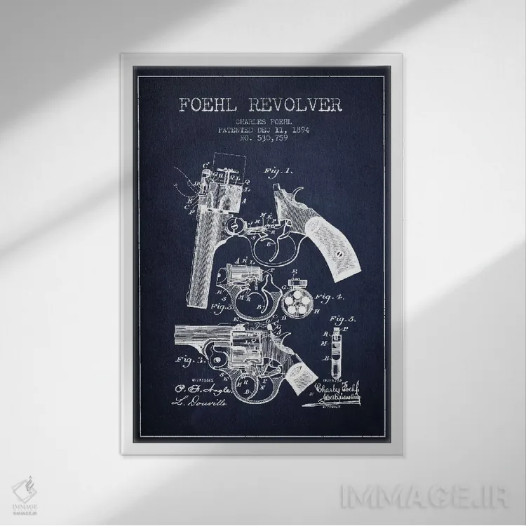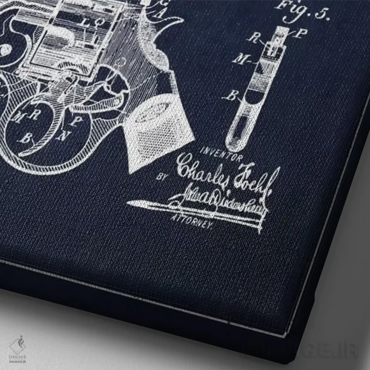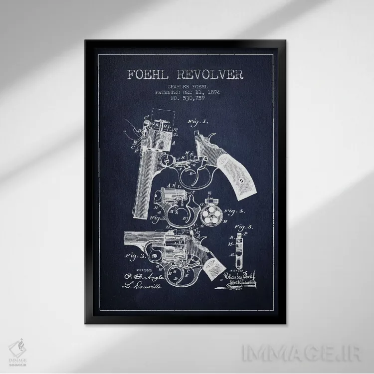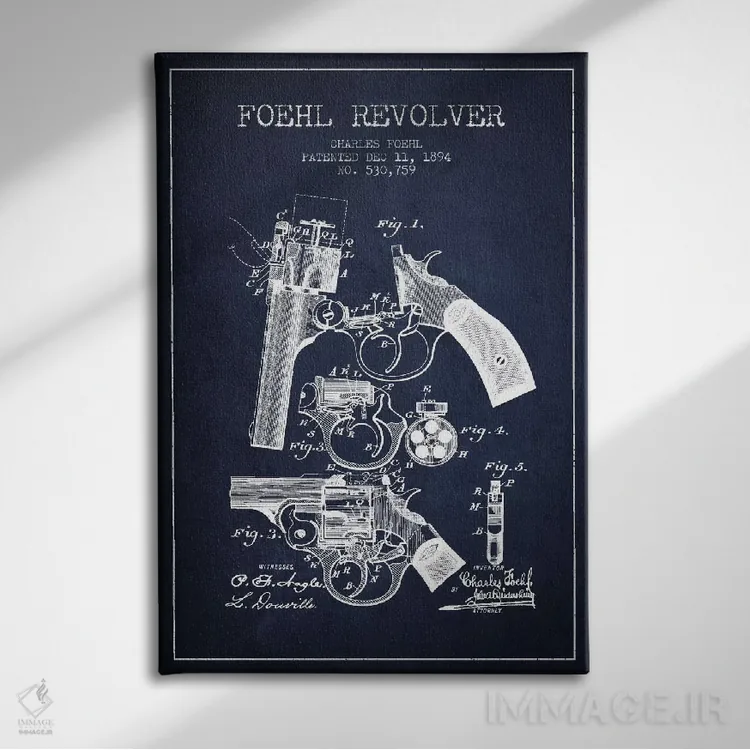 تابلو نقشهٔ ثبت اختراع رولور فوهل سرمهای اثر پیکسل کهنه (استودیو/نام هنری)