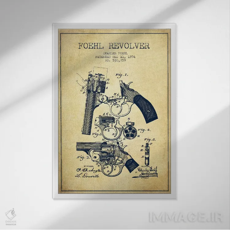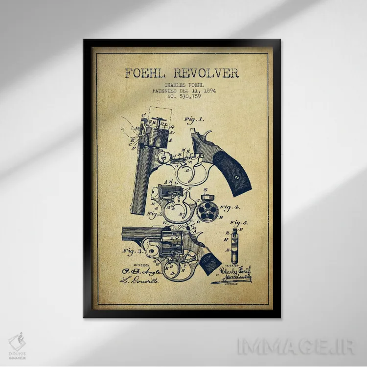 تابلو نقشهٔ ثبت اختراع رولور فوهل قدیمی اثر پیکسل کهنه (استودیو/نام هنری)