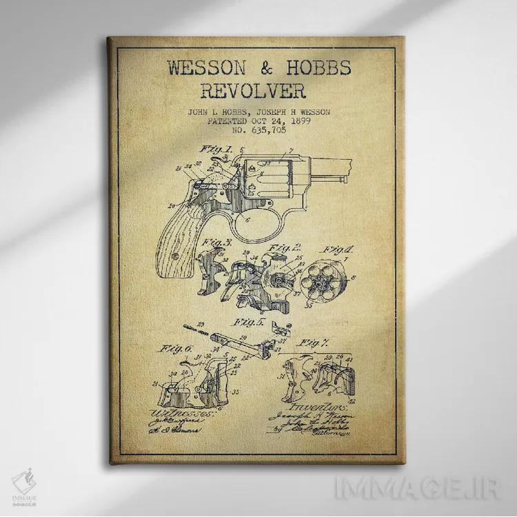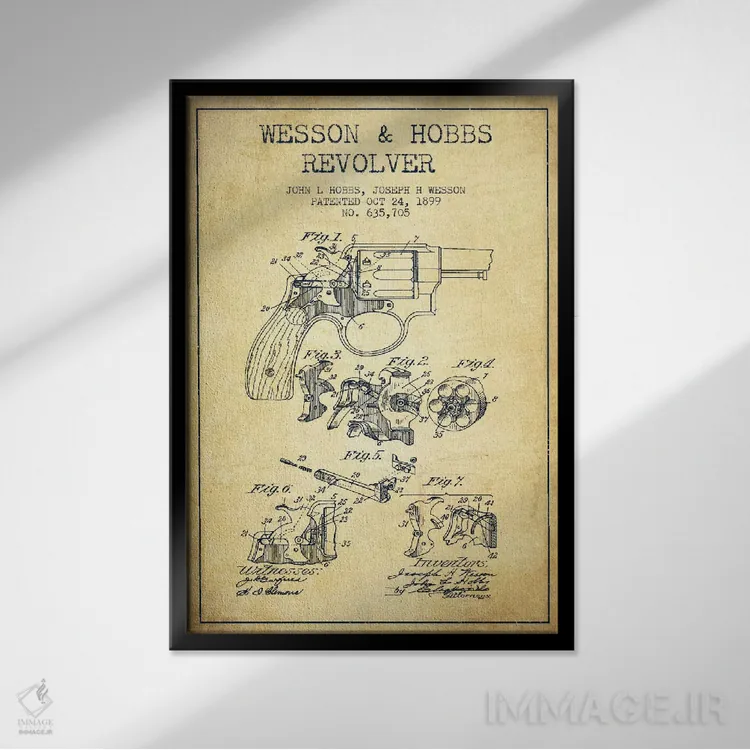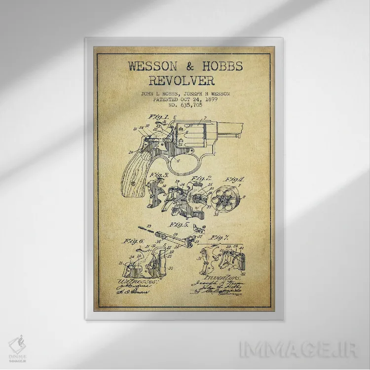 «نقشهٔ ثبت اختراع رولور وسن و هابز قدیمی» اثرِ «پیکسل کهنه (استودیو/نام هنری)» اگر به جزئیات کلاسیک و حس قدیمیِ شیک علاقه دارید، گزینهی خوبیست.