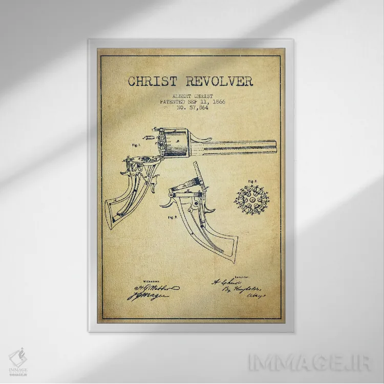 تابلو نقشهٔ ثبت اختراع رولور کریست قدیمی اثر پیکسل کهنه (استودیو/نام هنری)
