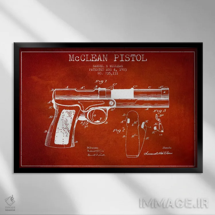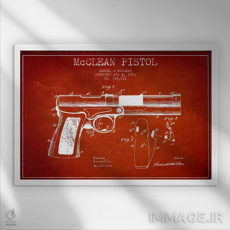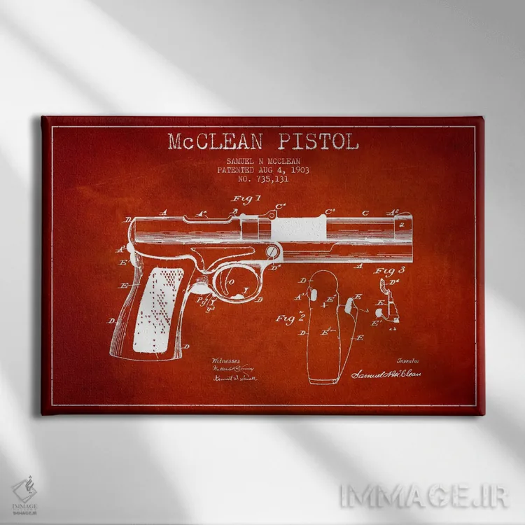 تابلو نقشهٔ ثبت اختراع تپانچه مککلین قرمز اثر پیکسل کهنه (استودیو/نام هنری)