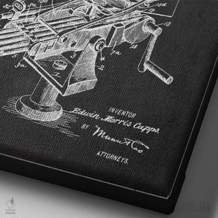 تابلو نقشهٔ ثبت اختراع اسلحه کاپس ام ذغالی اثر پیکسل کهنه (استودیو/نام هنری) - نمای نزدیک بافت بوم