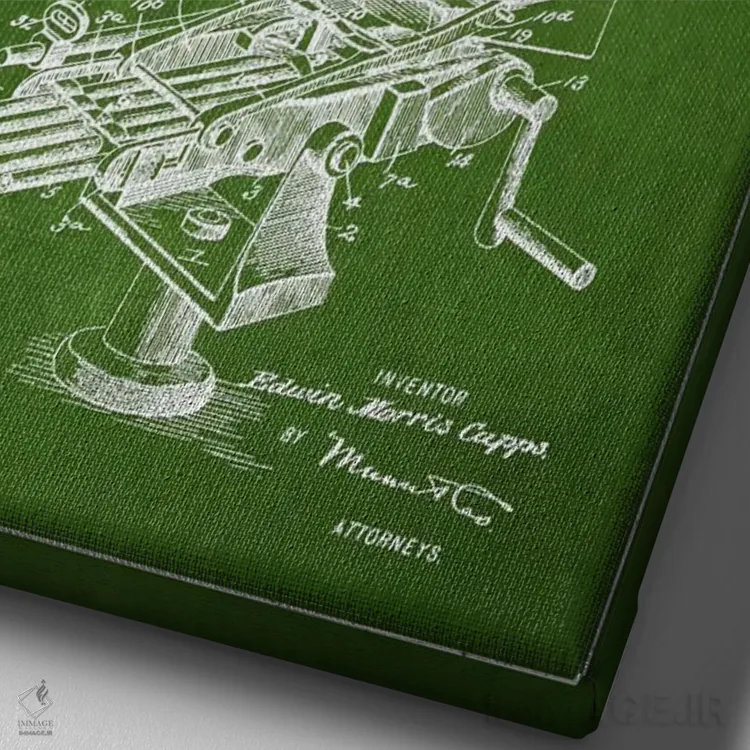 تابلو نقشهٔ ثبت اختراع اسلحه کاپس ام سبز اثر پیکسل کهنه (استودیو/نام هنری) - نمای نزدیک بافت بوم
