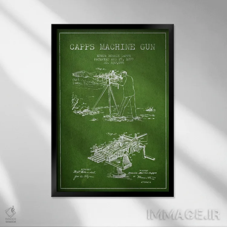 تابلو نقشهٔ ثبت اختراع اسلحه کاپس ام سبز اثر پیکسل کهنه (استودیو/نام هنری)