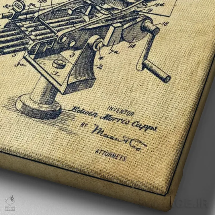 تابلو دکوراتیوِ «نقشهٔ ثبت اختراع اسلحه کاپس ام قدیمی»؛ مناسب برای فضاهایی با چوب تیره، چراغهای گرم و اکسسوریهای کلاسیک اثرِ «پیکسل کهنه (استودیو/نام هنری)».