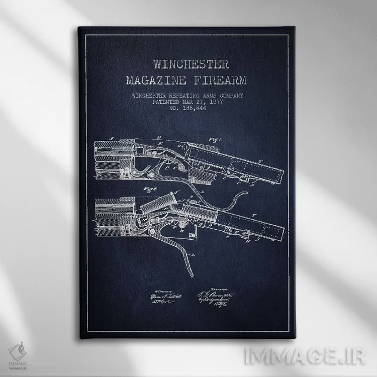 تابلو نقشهٔ ثبت اختراع تفنگ وینچستر سرمهای اثر پیکسل کهنه (استودیو/نام هنری)