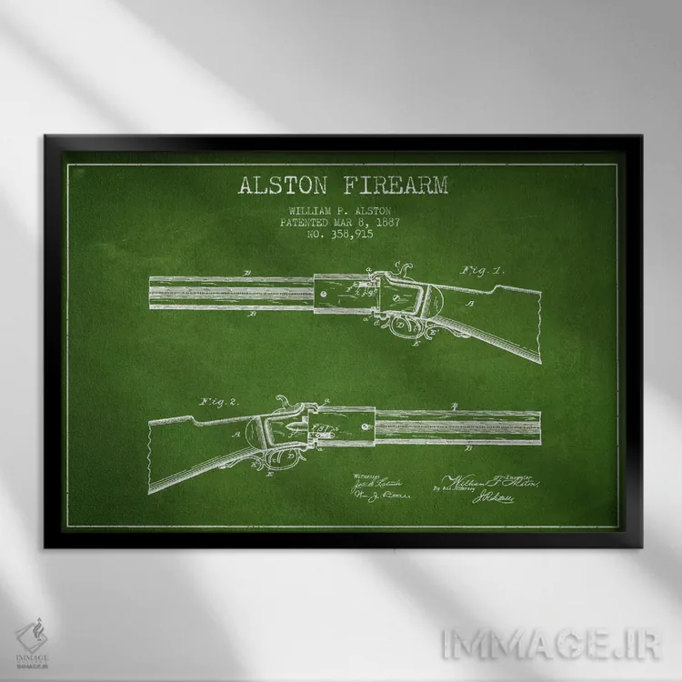 تابلو نقشهٔ ثبت اختراع سلاح آستون سبز اثر پیکسل کهنه (استودیو/نام هنری)